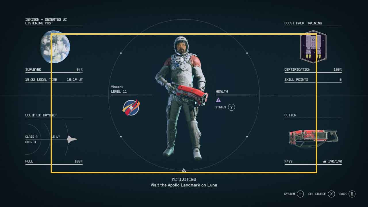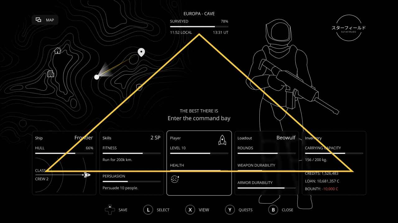 The view button brings up the game map. This can also be accessed through the menu screen. This game has a four-layer map system, ranging from star clusters to ground maps.